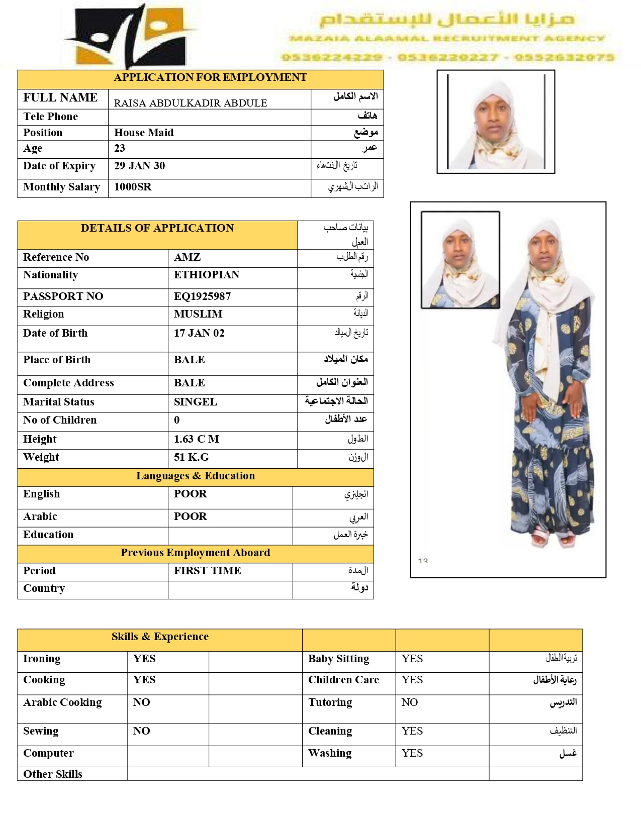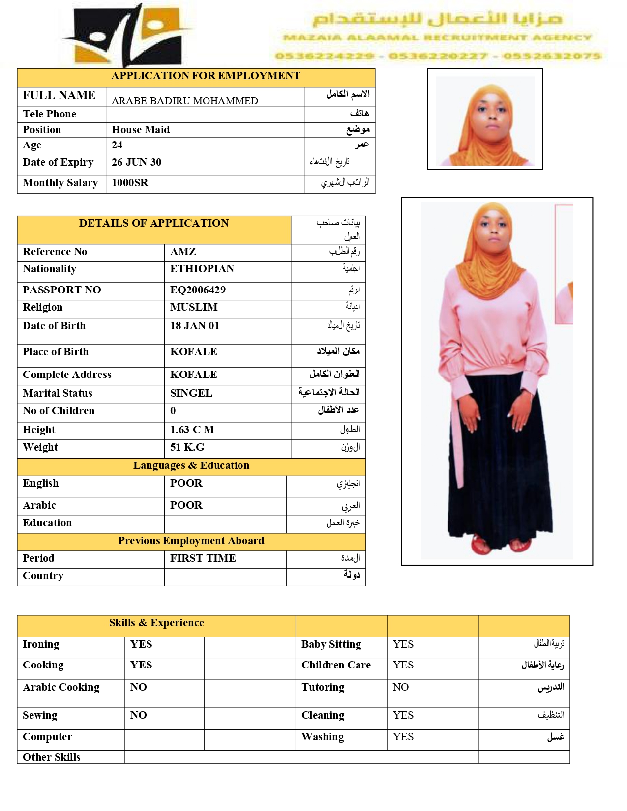 عاملة منزلية