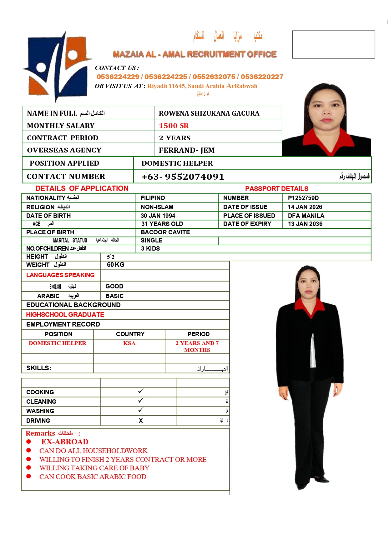 • رقم الجواز :