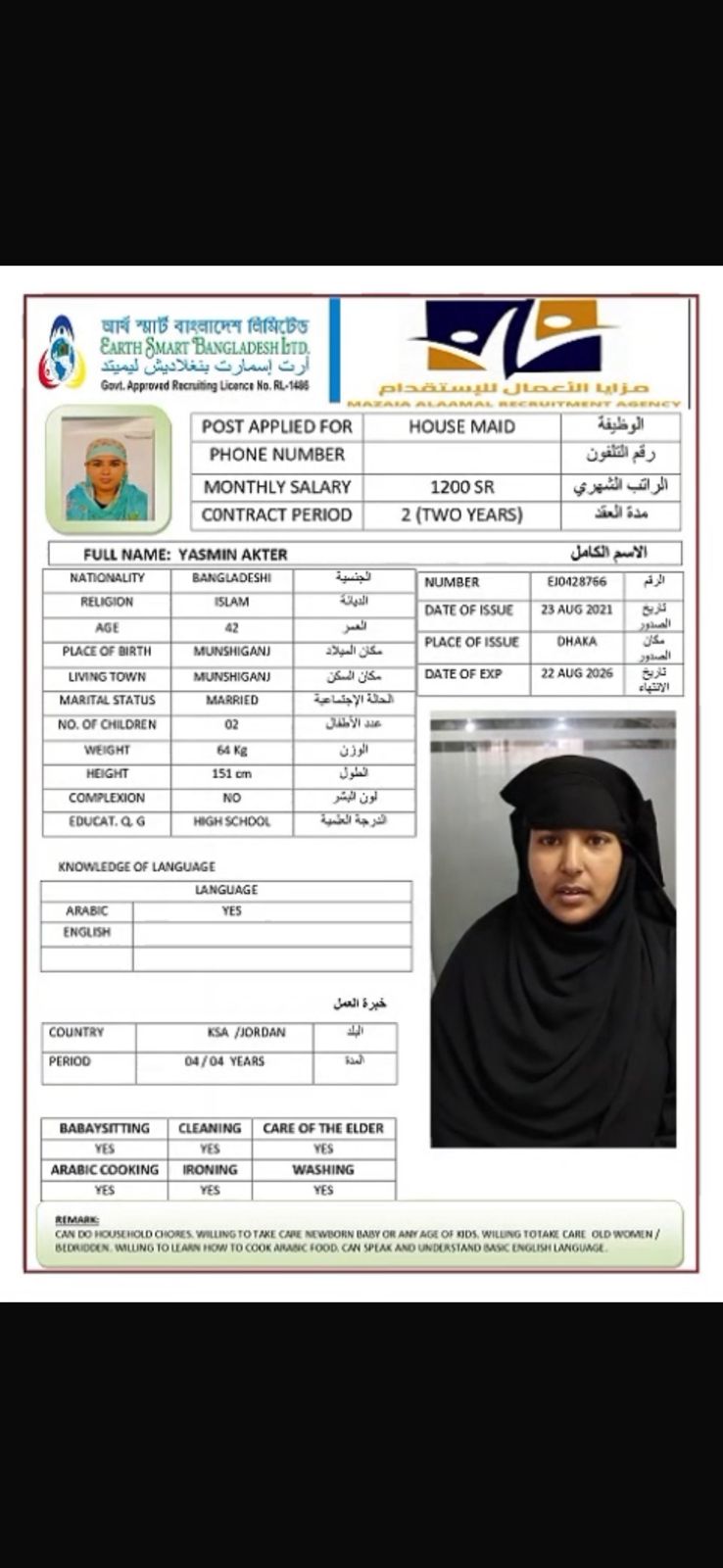 عاملة منزلية